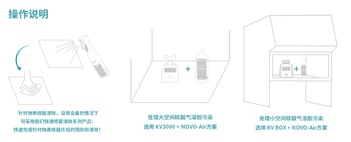 可以选用没有腐蚀性、对试验人员及环境友好、无刺激的核酸清除剂,如润联提供的“NOVOCIDE核酸污染清除剂”。主要原理是通过氧化作用,清除效果强,已在多个国家级疾控使用,比其他传统的酶解法、常见的强氧化剂(次氯酸盐)降解效果更好!更加安全!不含生物酶,无腐蚀性,无致畸、致癌性。该试剂可以处理易腐蚀的区域,如在移液器、生物安全柜、离心机、传递窗等区域通过设备或直接进行喷洒清除。