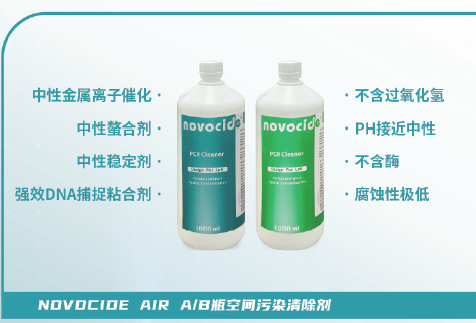 可以选用没有腐蚀性、对试验人员及环境友好、无刺激的核酸清除剂,如润联提供的“NOVOCIDE核酸污染清除剂”。主要原理是通过氧化作用,清除效果强,已在多个国家级疾控使用,比其他传统的酶解法、常见的强氧化剂(次氯酸盐)降解效果更好!更加安全!不含生物酶,无腐蚀性,无致畸、致癌性。该试剂可以处理易腐蚀的区域,如在移液器、生物安全柜、离心机、传递窗等区域通过设备或直接进行喷洒清除。