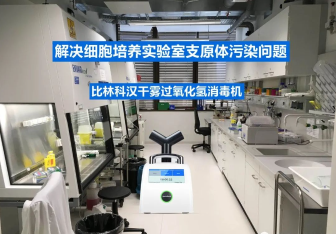 解决细胞间支原体污染,可以使用诺福支原体清除喷雾进行空间消毒,干雾灭菌方案构成:诺福支原体清除剂 + 比林科汉干雾过氧化氢灭菌设备。
